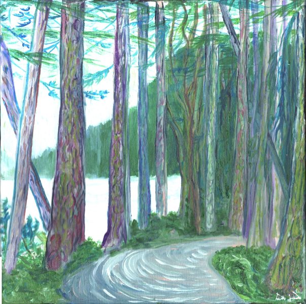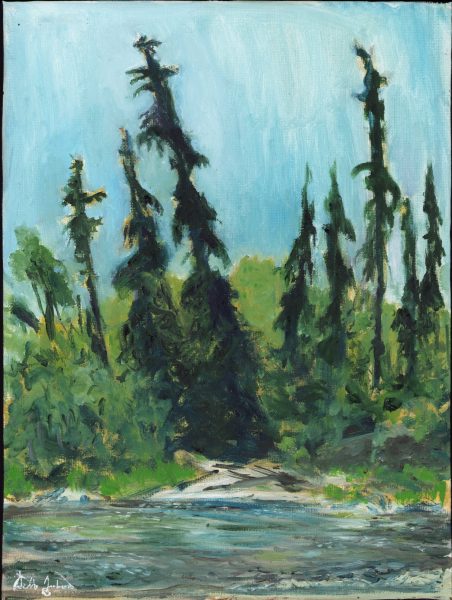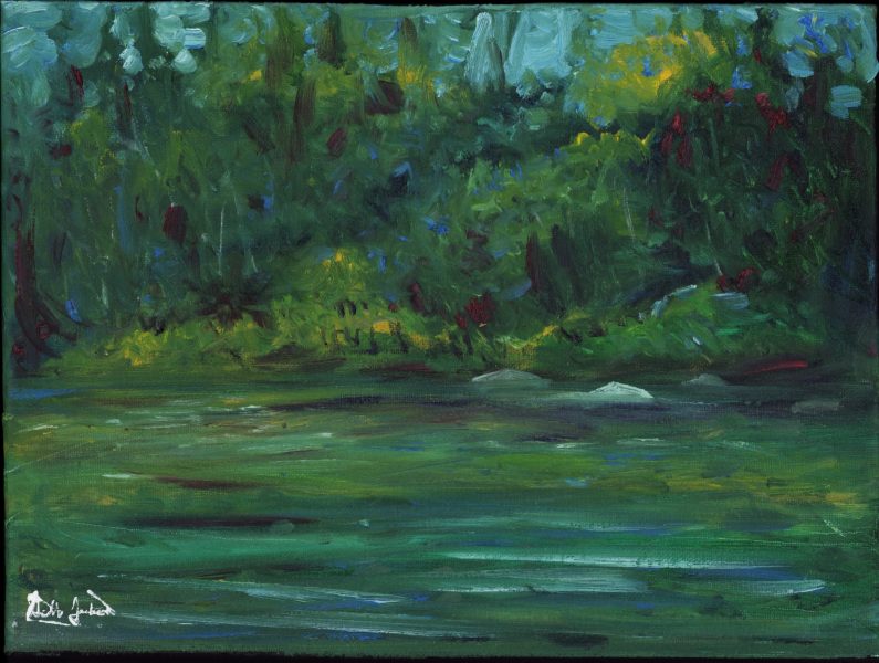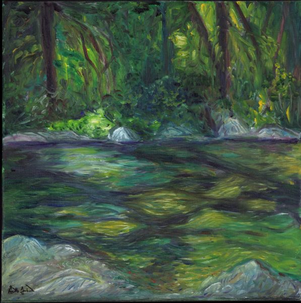 Tree Shadows on Calawah Pool – 14 x 14 – $200