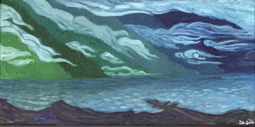 Winter Clouds on Lake Crescent – 10 x 20 – $300